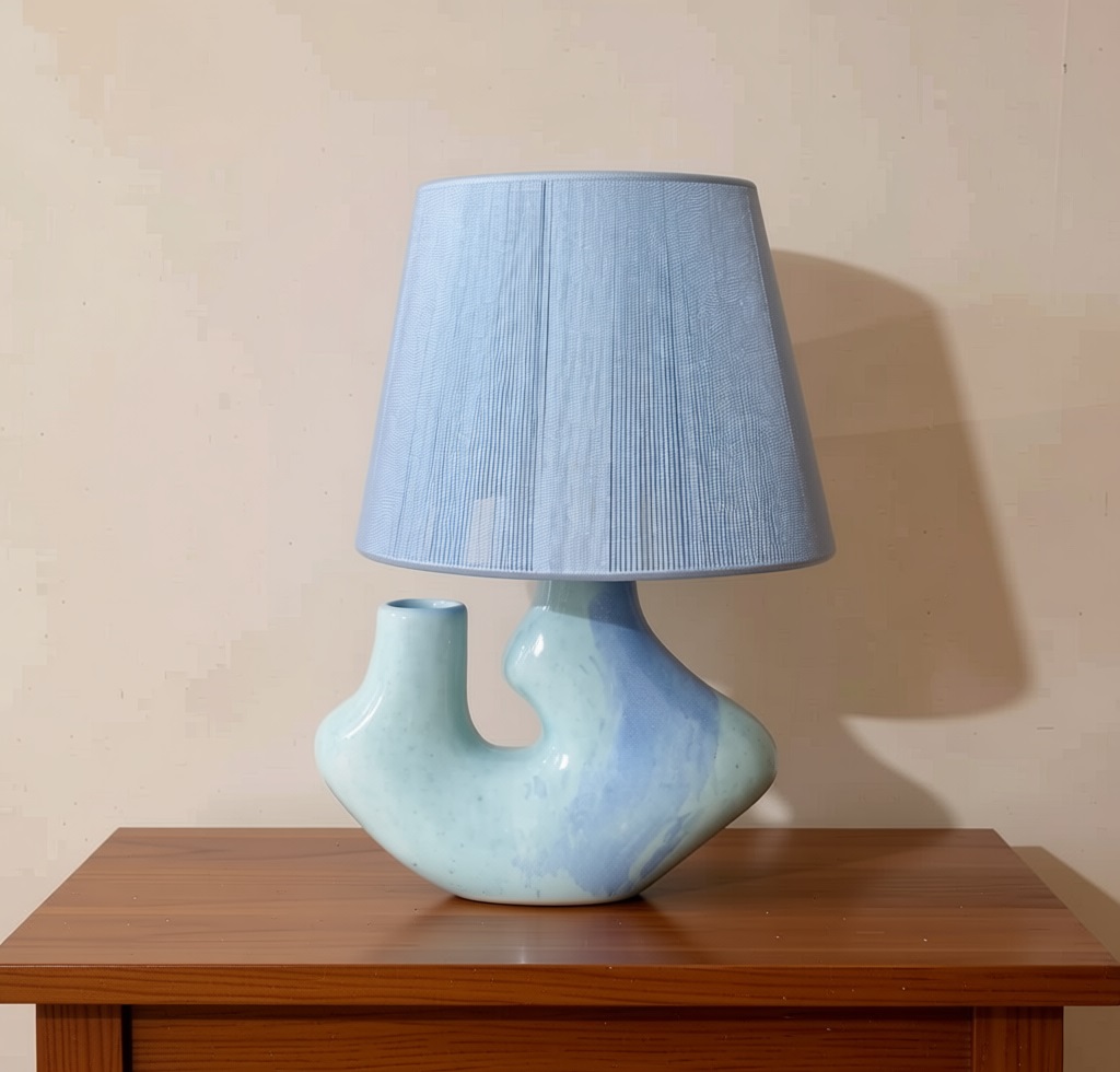 نور ملایمی که از آن ساطع می‌شود، محیط را گرم و صمیمی می‌کند و برای اتاق خواب، پذیرایی یا حتی میز کار بسیار مناسب است. همچنین آباژور فیروزه‌ای، با ایجاد تمرکز بصری زیبا، به هر گوشه‌ای از خانه جلوه‌ای خاص می‌بخشد.