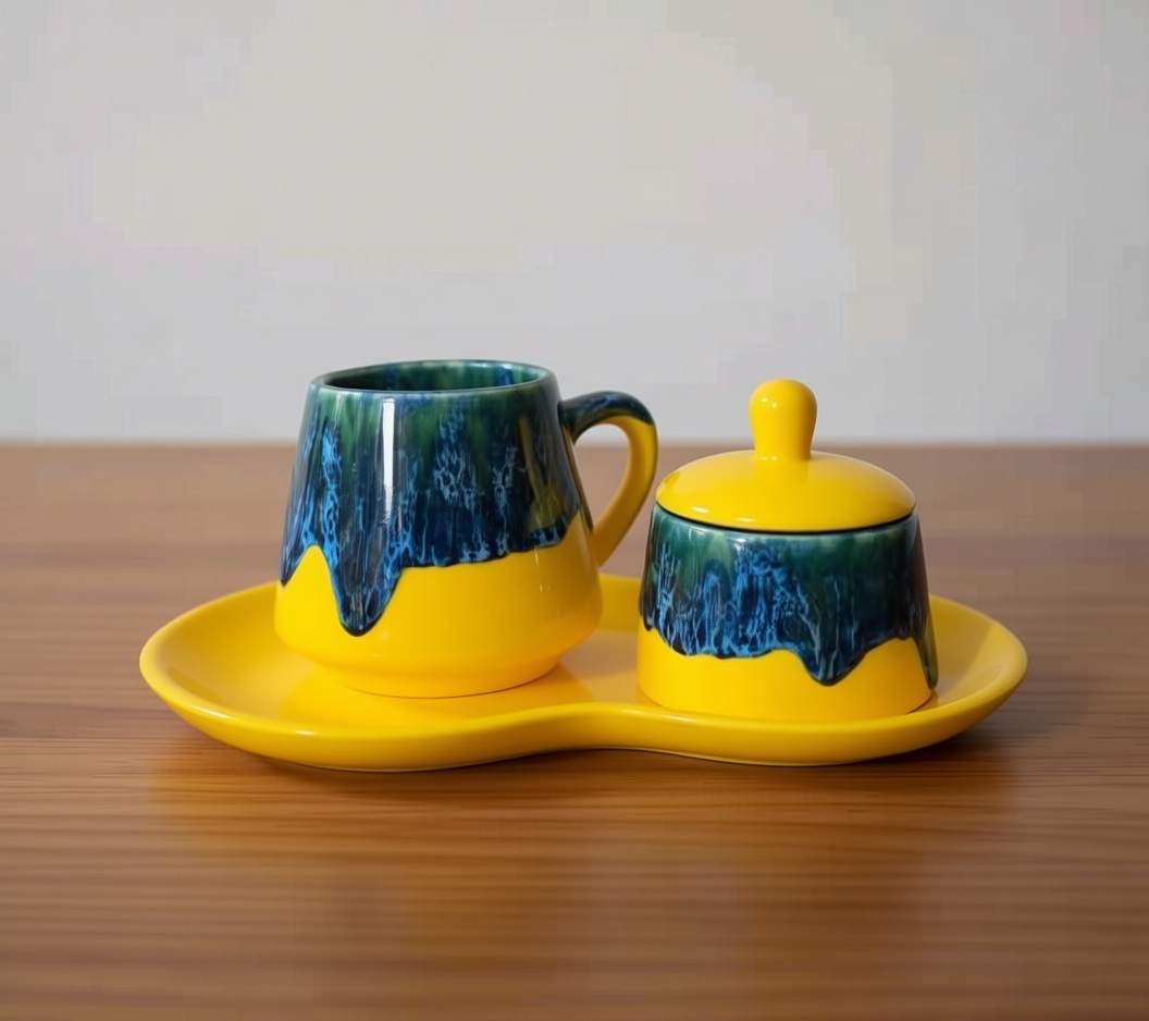 دو رنگ متضاد اما هماهنگ زرد و آبی، ترکیبی از طراوت و آرامش را به فضای شما هدیه میکند. این ست میتواند دکور آشپزخانه یا میز کار شما را به یک محیط شاد و دلنشین تبدیل کند.