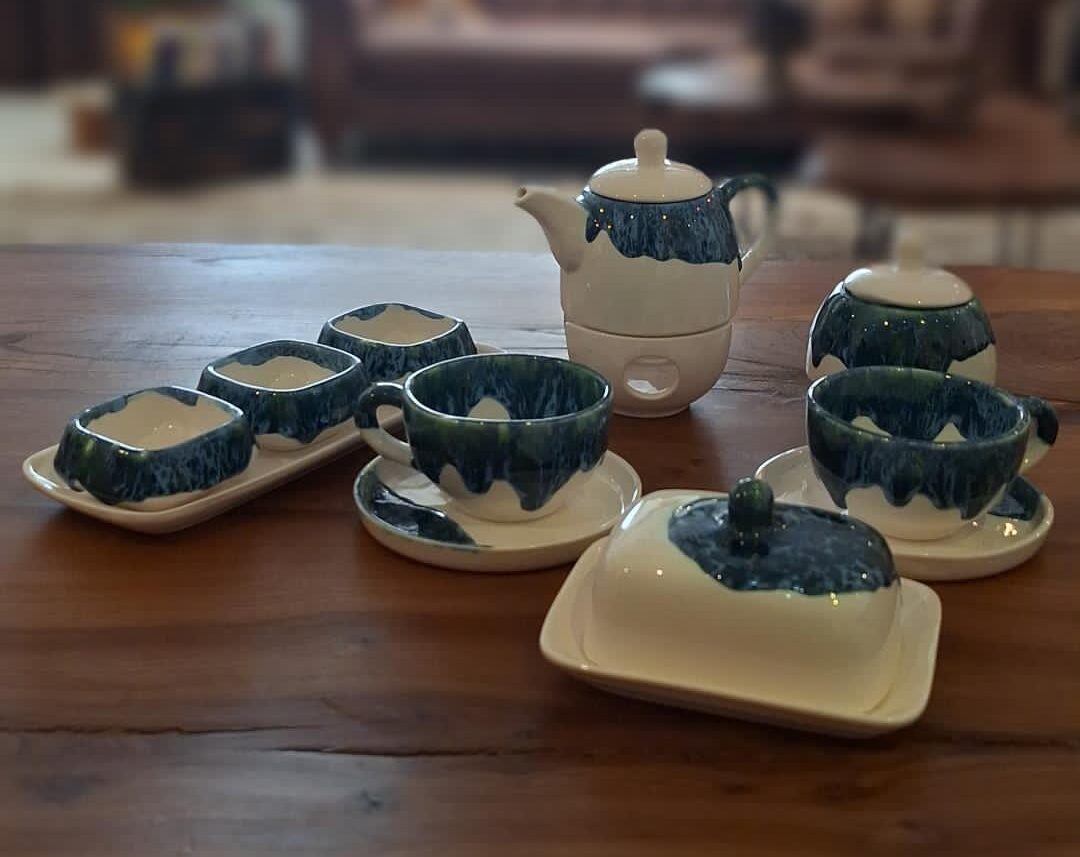 رنگآمیزی ملایم و درخشانش، ترکیبی از آبی دریا، سبز آرامش و سفیدی کف موج است. این ترکیب، نوری خاص به فضا میدهد و حس تازگی را حتی در روزهای معمولی زنده میکند. قوری این ست با طراحی ارگونومیک و حجم مناسب، چای یا دمنوش را برای مدت طولانی گرم نگه میدارد و لذت هر جرعه را دوچندان میکند.