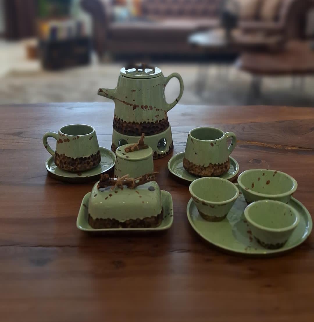 این مجموعه با دقت و ظرافت بالا از سرامیک باکیفیت ساخته شده است؛ رنگ فیروزهای لعابخوردهاش در هر زاویهای تغییرات ظریف نوری دارد و با هر بار نگاه، جلوهای تازه میآفریند. فنجانها، نعلبکیها و قوری با خطوط نرم و منحنیهای دلنواز طراحی شدهاند تا ترکیبی از سادگی مدرن و اصالت ایرانی را به نمایش بگذارند.